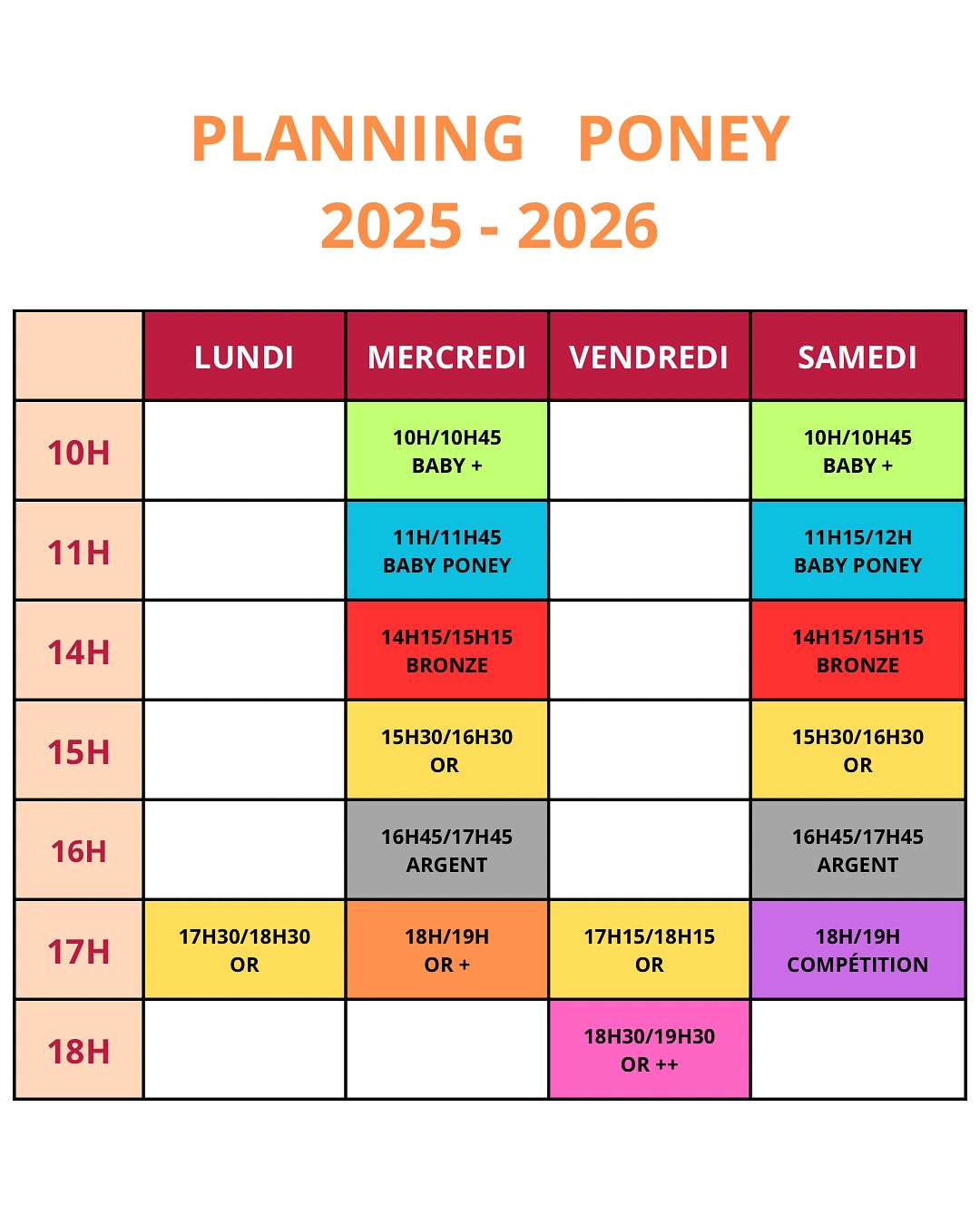 Lors des vacances scolaires, le planning des écuries (centre équestre et poney club) s’adapte pour proposer à nos cavaliers habituels et aux cavaliers de passage des stages à la demi-journée ou à la journée complète. Ces stages permettant de valider les galops fédéraux. Des cours particuliers et collectifs, ainsi que des balades de tous niveaux complètent le planning.